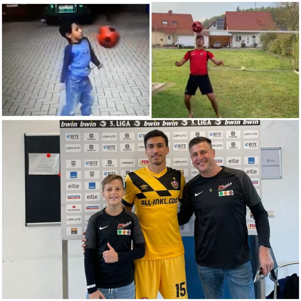 Training mit dem Mauzi – Fitnessball zahlt sich aus. Matchwinner mit 2 Toren im heutigen Spitzenspiel SG Dynamo Dresden vs. SSV Ulm 1846 war Claudio Kammerknecht, der schon als kleiner Zwerg voller Freude mit dem Ball an der Schnur trainierte und damit sein Ballgefühl optimierte .